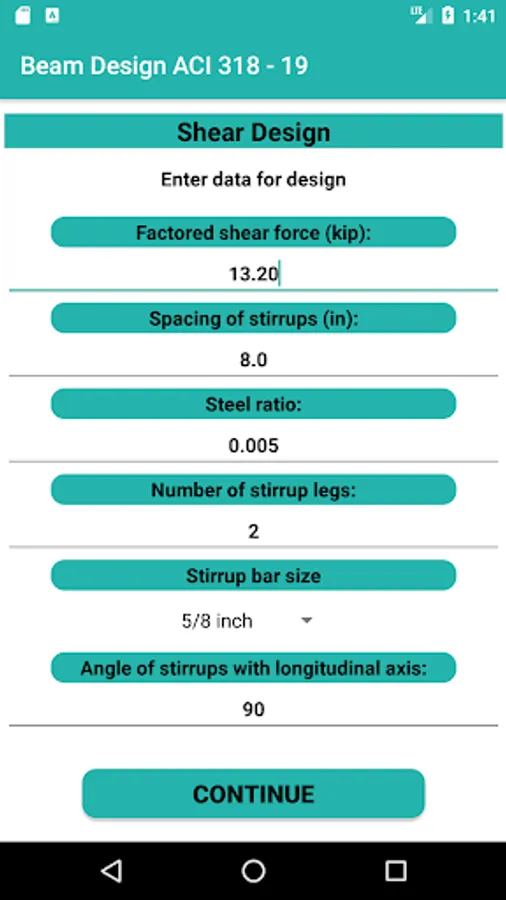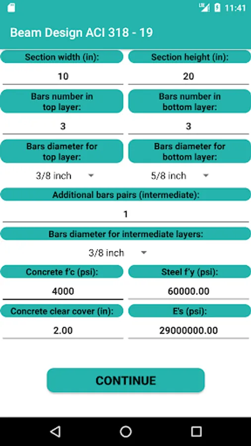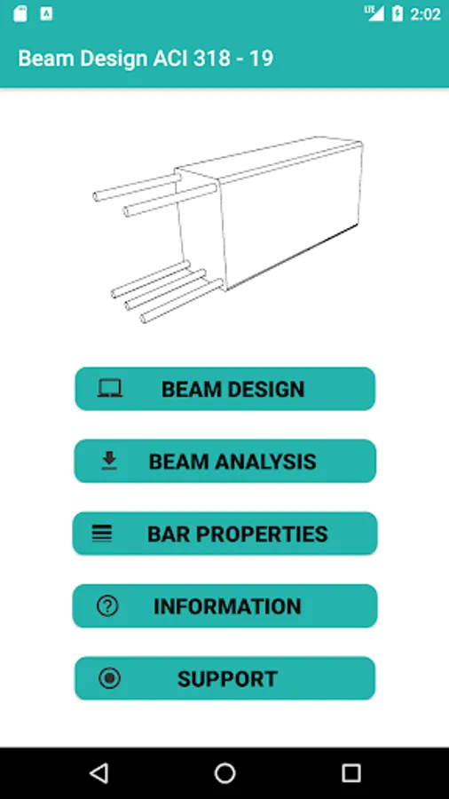 Concrete beam design according to Building Code Requirements for Structural Concrete (ACI 318-19).
