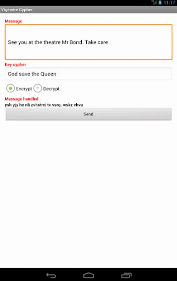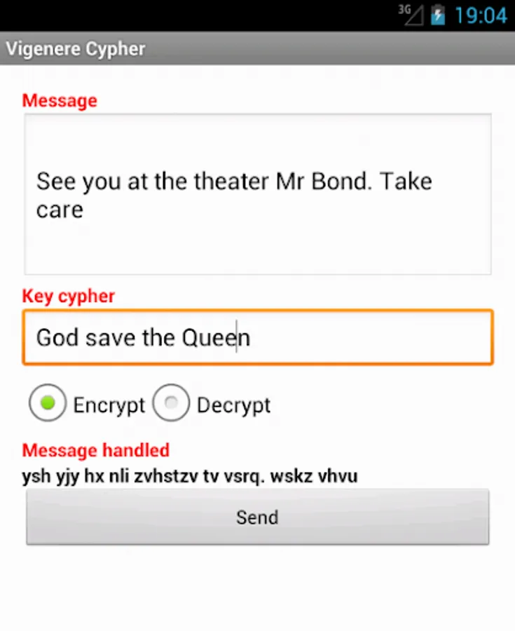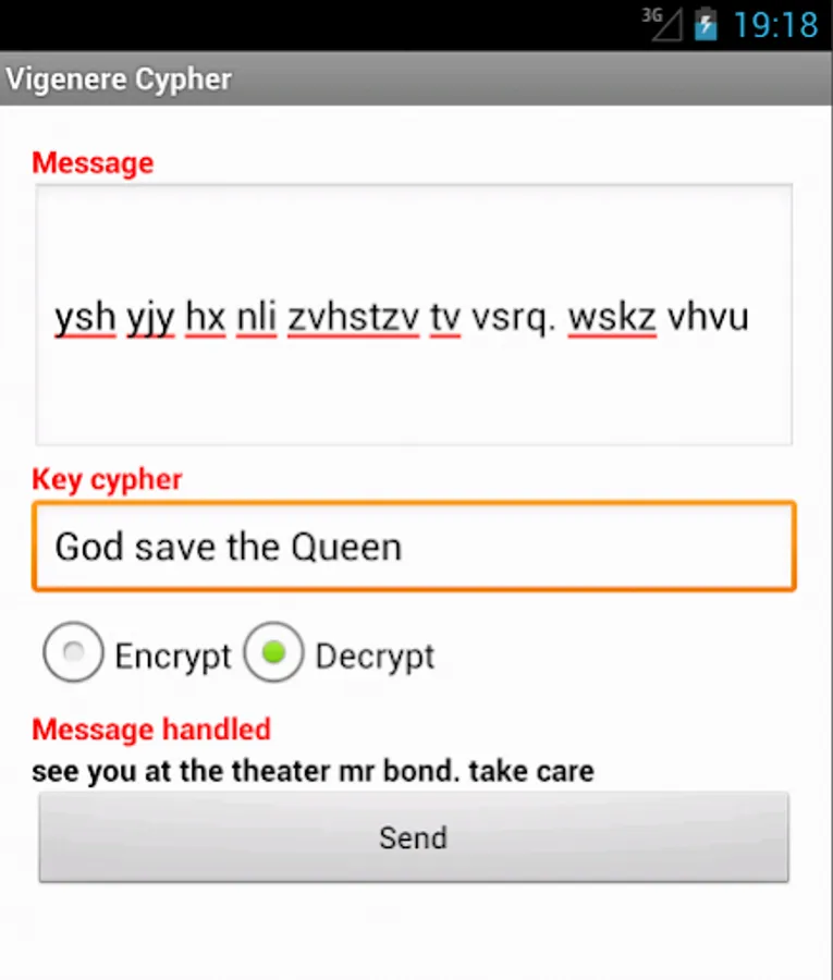 This application allows you to exchange encrypted messages with your contacts with Vigenere cipher.