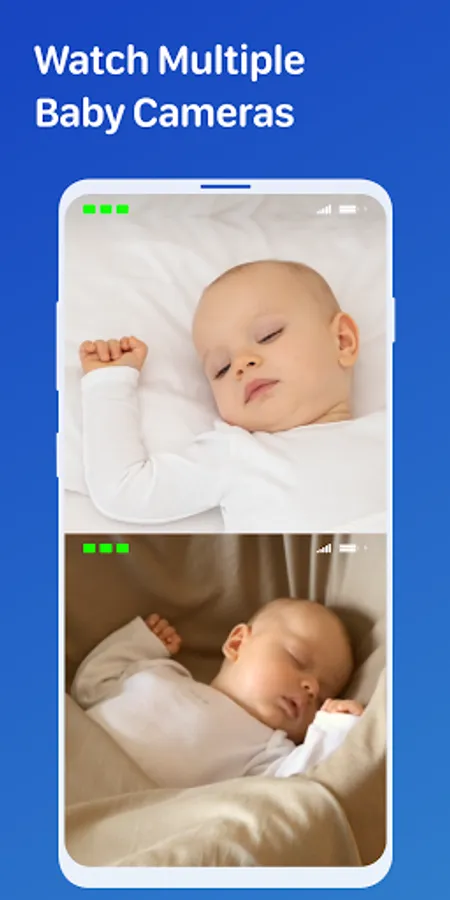 Watch live video from multiple baby cameras installed at home at the same time. Use multiple baby monitor devices to watch live video from multiple baby cameras at the same time. Both parents can stay in touch with their baby no matter where they are.