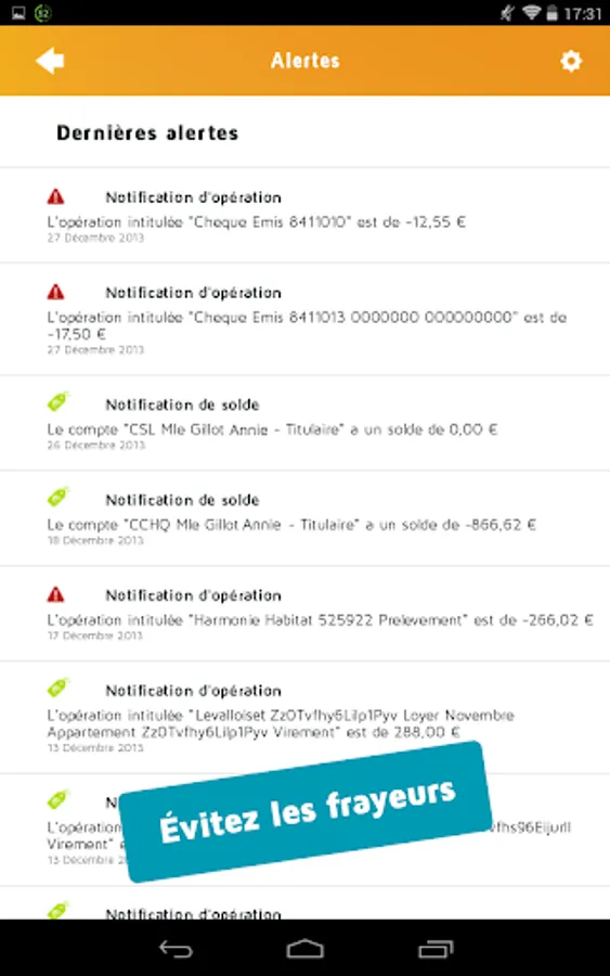 Notifications inform you before your bank account will come in red or in case of unusual movements of your money. You avoid unpleasant surprises.