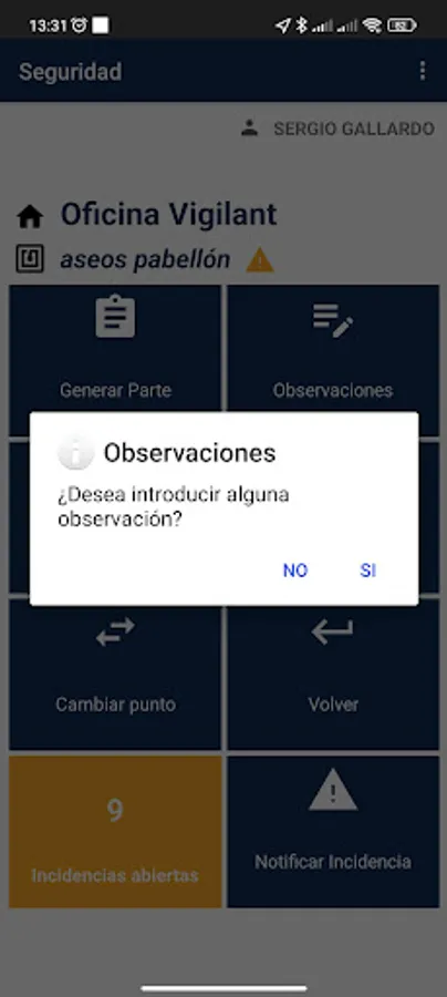6. NOTICE OF INCIDENTS. In the event menu the operator will find a menu with the most common incidents or events announcements, if during the presence anomaly that must be reported by the operator will choose appropriate and accompanied with descriptive picture is detected. The result is the record of what happened in that room that day at that time and the operator concerned. Also, if you have previously provided that each time it happens to be warned any responsible, this will receive notice in an email, each incident can notify different managers.