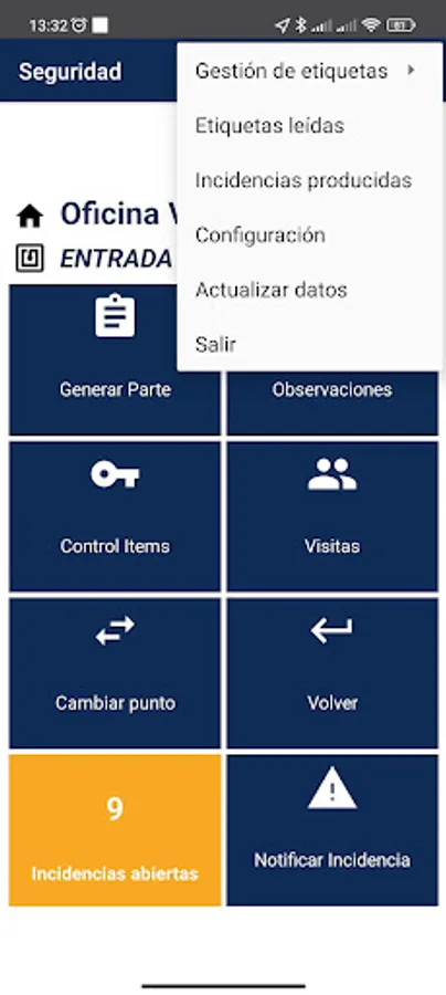 5. SCORING TASK IN THE ROOM. In the device the operator find a menu of tasks, events and incidents, which will use as appropriate. It will record the task or tasks performed in place of presence.