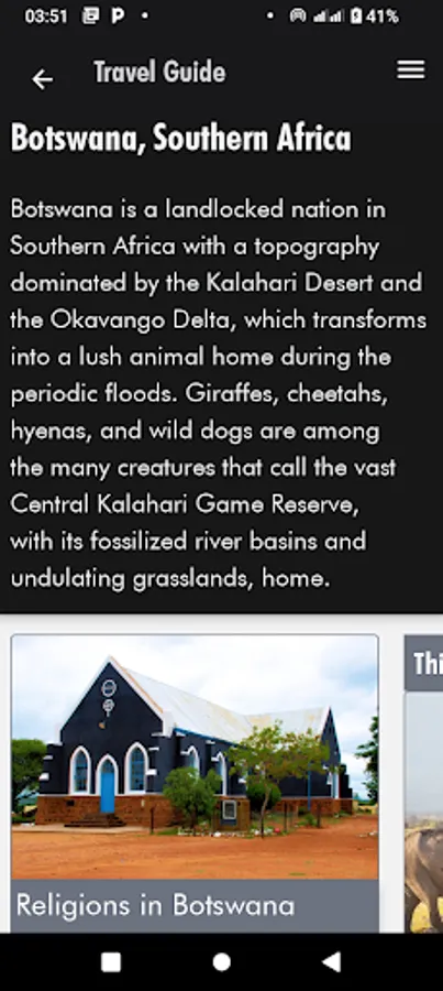 Botswana Travel guide is the go to app for tourists who plans to visit Botswana. The app has so many content it is over 90% offline.