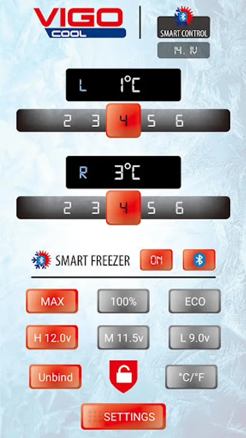 You can control the Vigo fridge from your smartphone, without having to use physical buttons. With the application you can set the temperature of the refrigerator, check the voltage, and other information.
