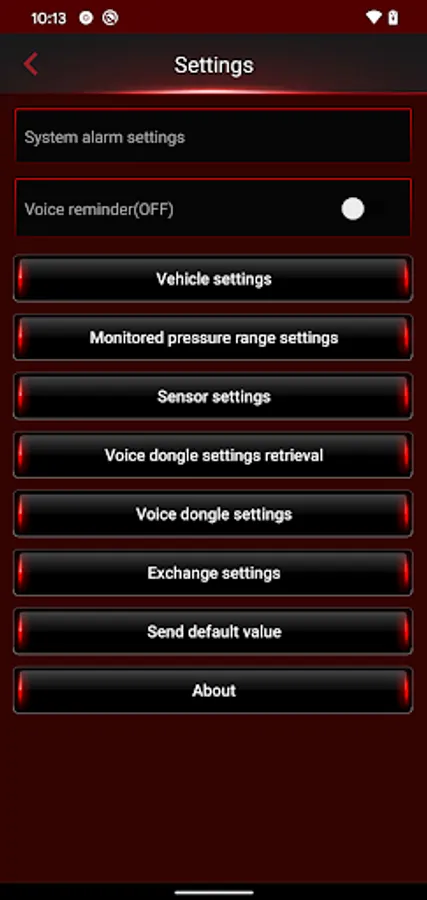 When tire sensors relay abnormal data, the app detects the abnormal status, uses voice/audio alerts to notify the driver, and displays the abnormal data and tire location on the app.