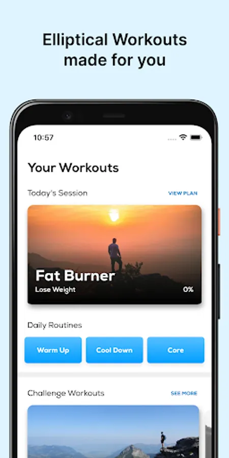 - Log your daily workouts, and repeat your favorites. Finish your plan and move onto your next elliptical workout challenge. Perfect for men or women.