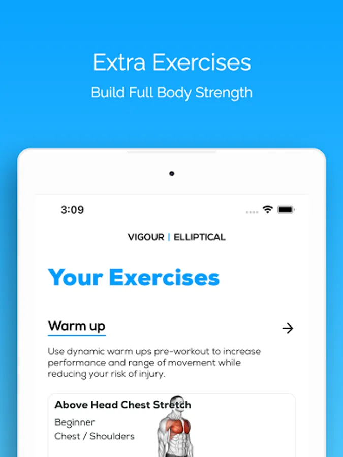 - Supplement your workouts with recommended exercises. Warm up and cool down effectively and build full body strength with additional exercises.