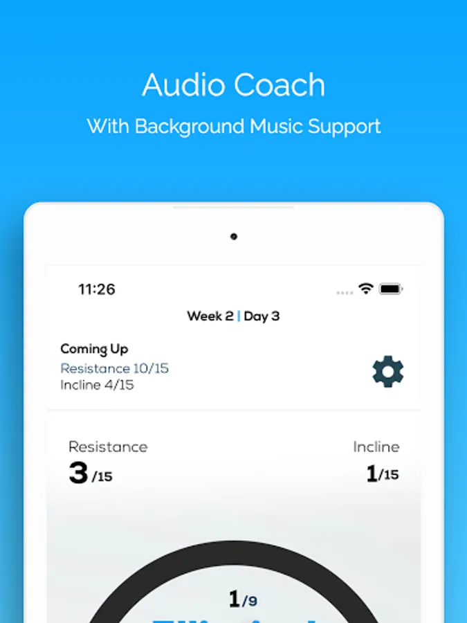 - Audio elliptical coach in every workout with countdowns so you know when to push harder. Supports playing your own music in the background.