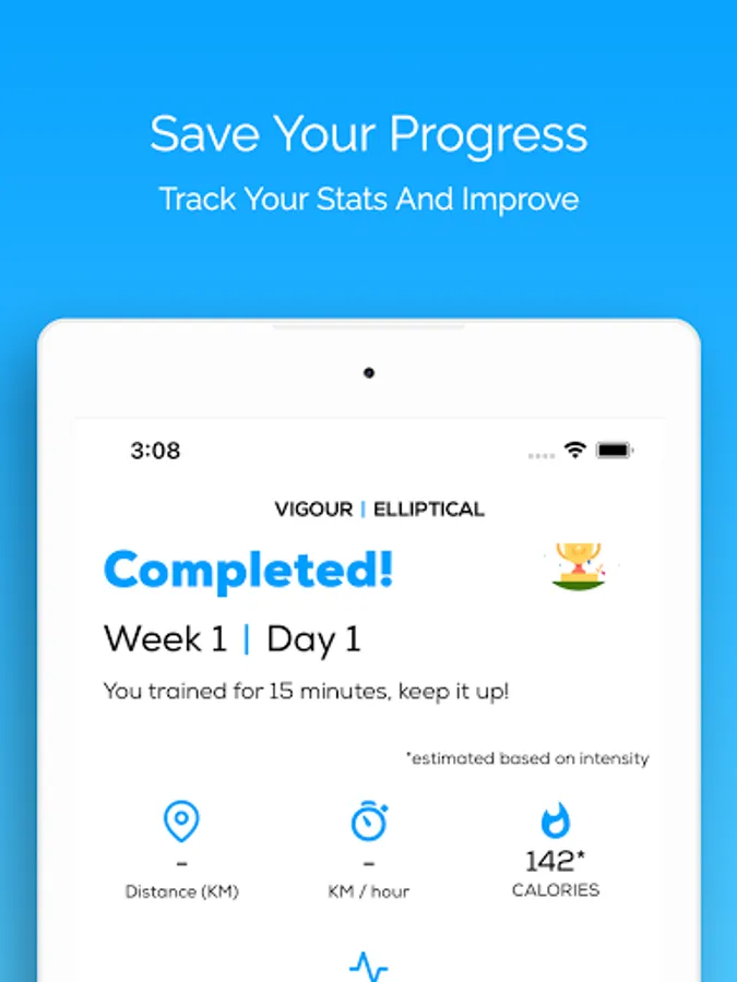 - Track your activity and make sure you keep on growing. When you finish your elliptical workout you can enter your calories, distance and heart rate so you can watch your improvements.