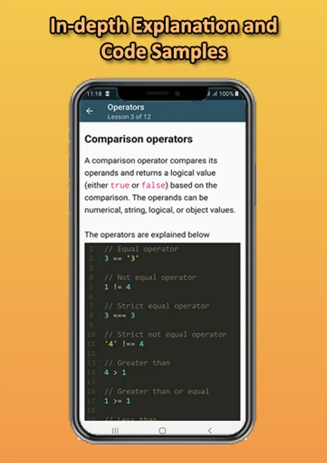 Learn JavaScript is an offline app made for aspiring programmers and web developers. You do not need a prior knowledge in JavaScript to start. This app covers from JavaScript basic to advance concepts.