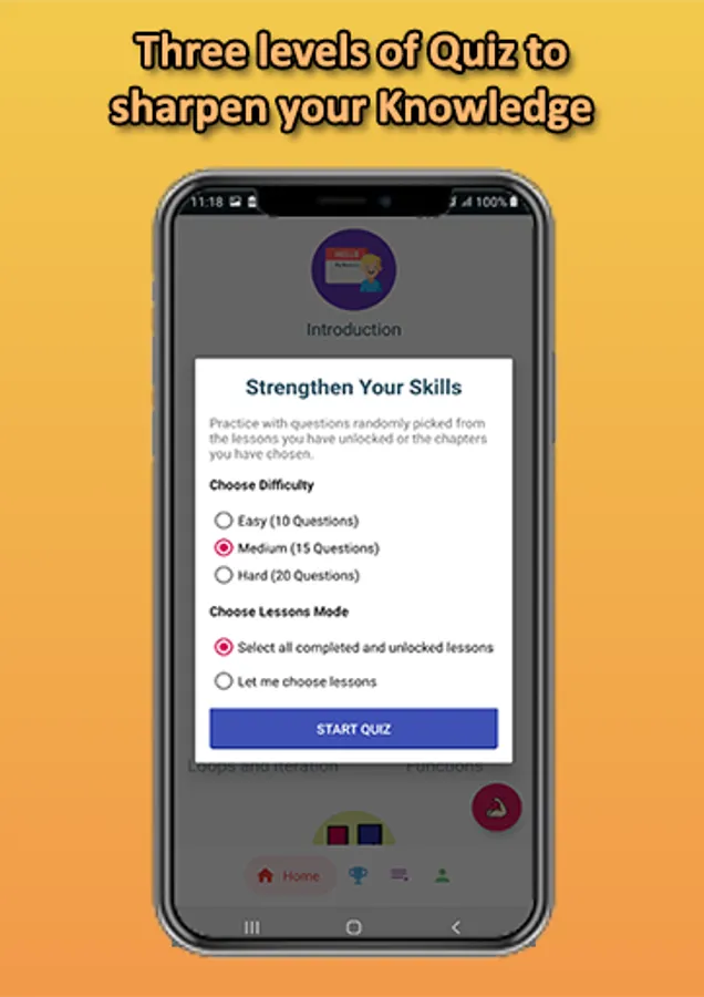 This app has 22 lessons from JavaScript introduction to Advance JavaScript designed for anyone to start learn. Some of the features of this app includes: