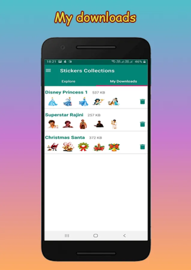 4. Go to the "MY STICKERS" and click on "delete" icon.