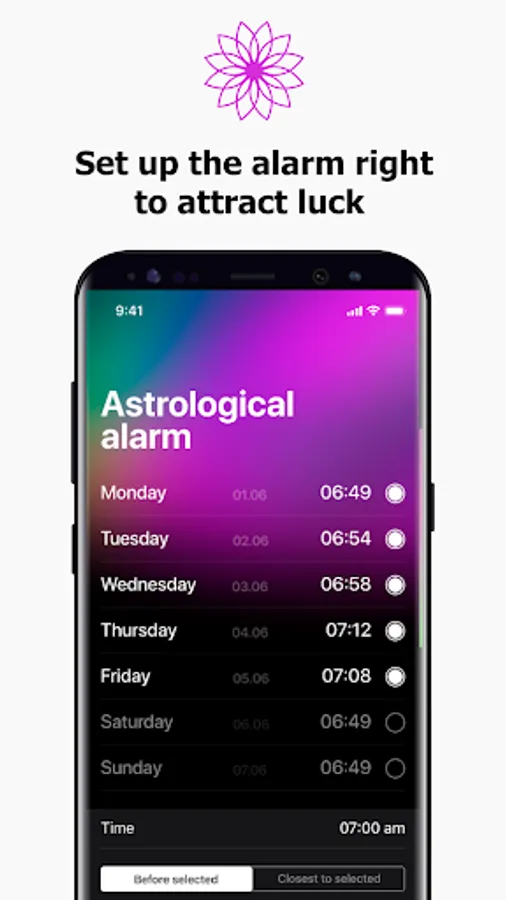 • AstroAlarm gives you the right time to set the alarm for tomorrow morning. Wake up easy, calm and vitalised for the day ahead.