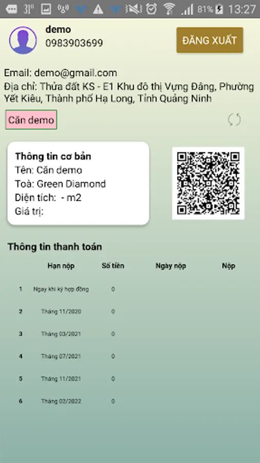 Application to look up payment progress information for the Green Diamond project. Through the application the customer knows when to pay and how many times to pay.