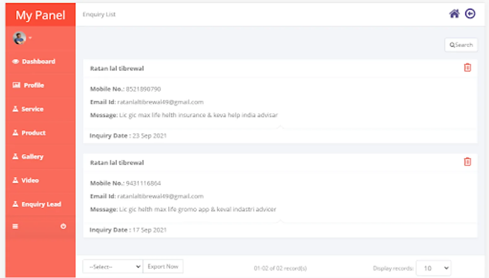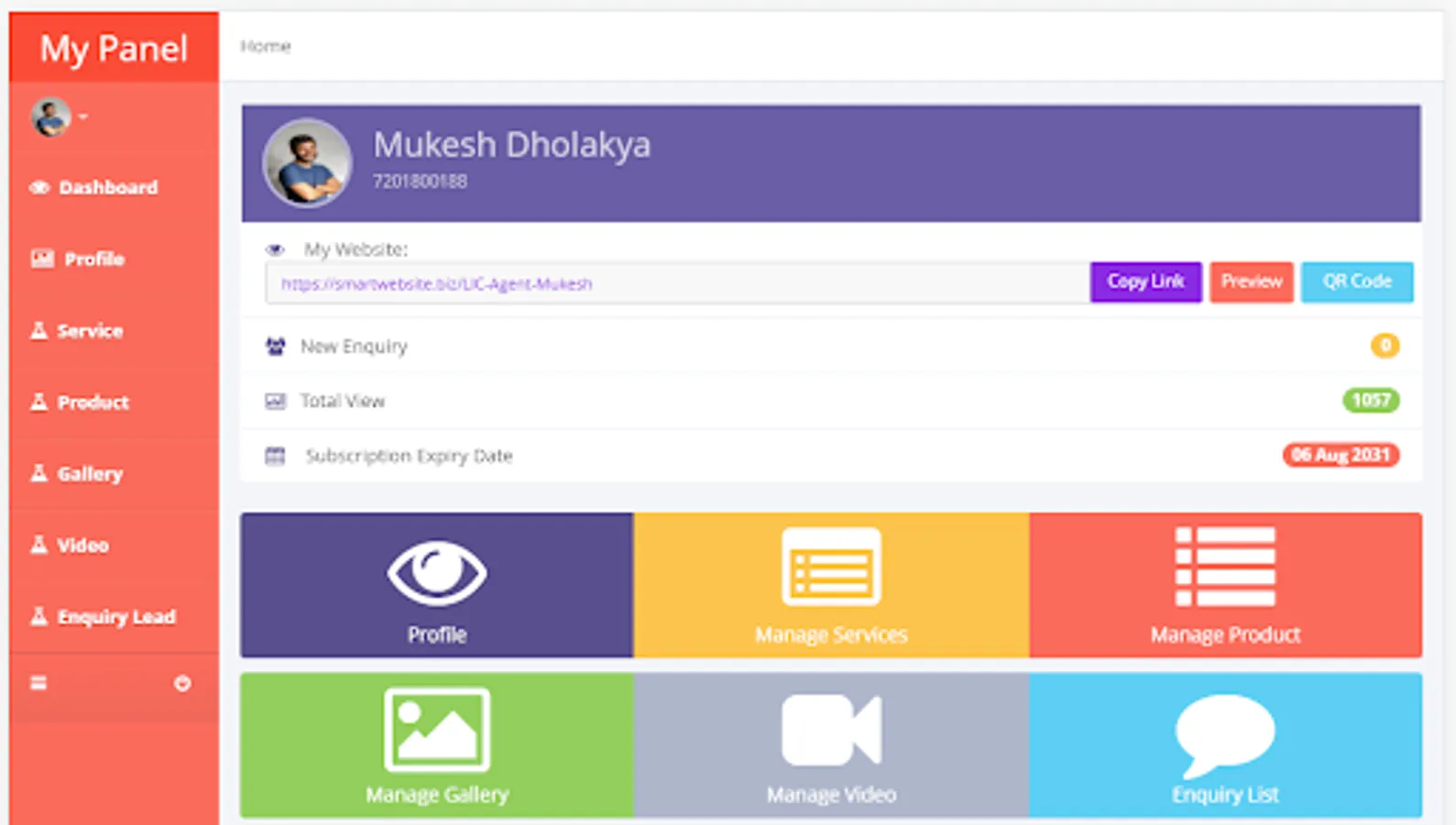 2. Separate control panel to display & manage your inquiry, card information, card view counts.