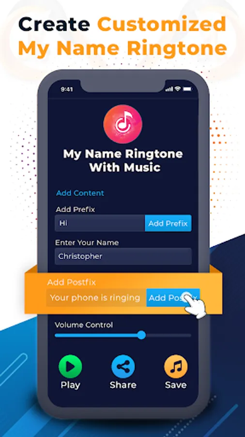 My Name Ringtone Maker App helps to create personalized free caller ringtones with desired custom text and multiple text suggestions. This is one of the best free app for making name music ringtone as your favorite caller tune.