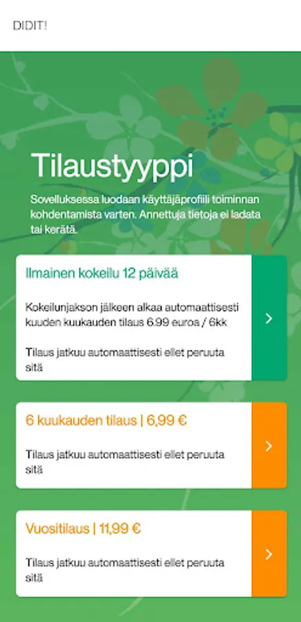 Users under the age of 12 may need assistance in using the app. You can use DIDIT together with your therapist, coach or healthcare professional.