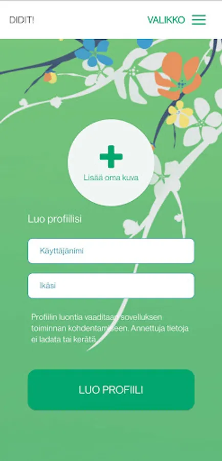 The app is suitable for all ages. Supported languages include finnish, swedish and english. Using the app doesn't require registration and no information leaves your device.