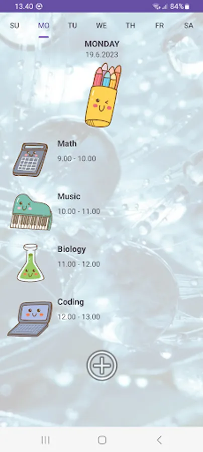 Pick kawaii style cute icon to every class or lesson. Change background of day and be unique!