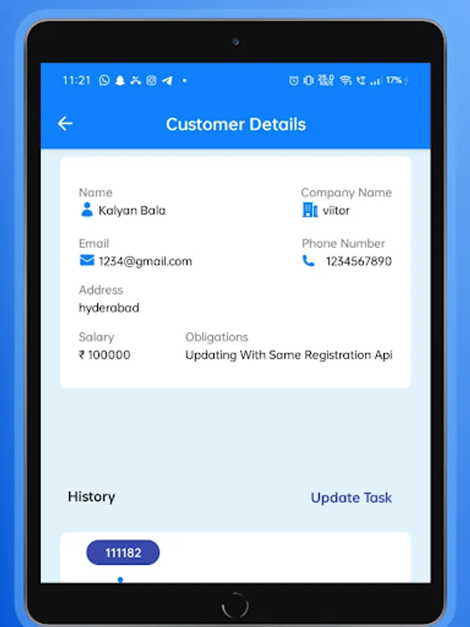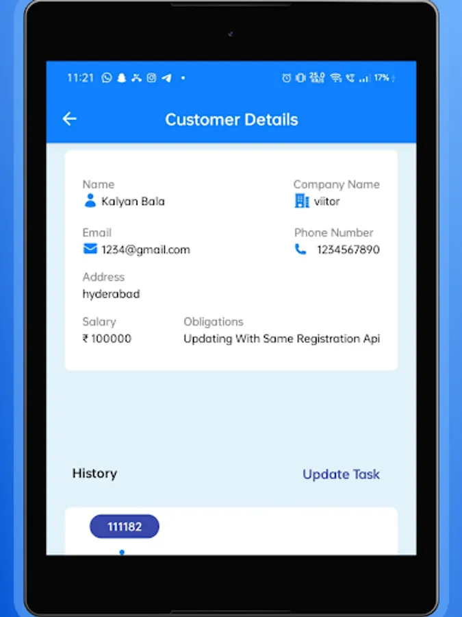 With the help of this application, we can track the customer details and we can followup the customer requirements. We can create n number of customer tasks, we can provide solution for the customer needs.