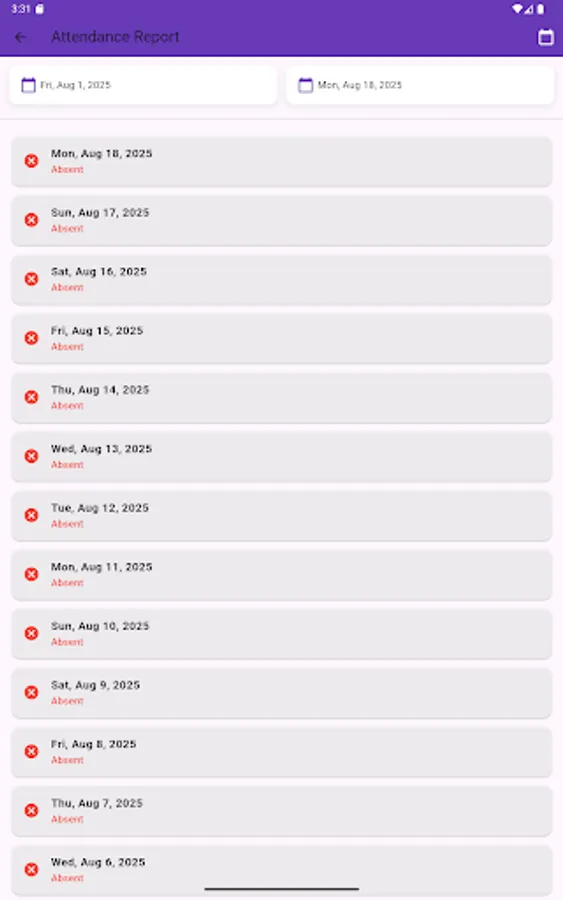Attendance history – Users can view past attendance records in a simple, organized log.