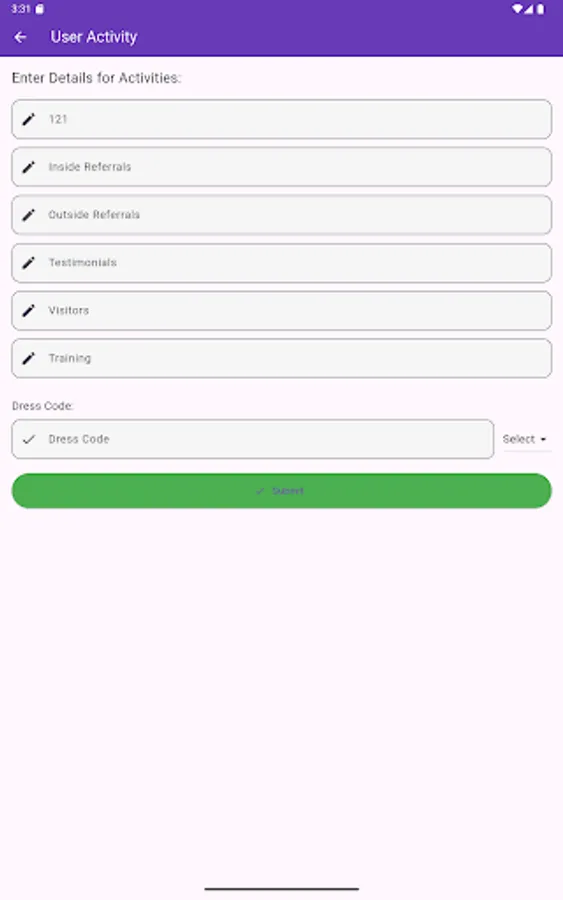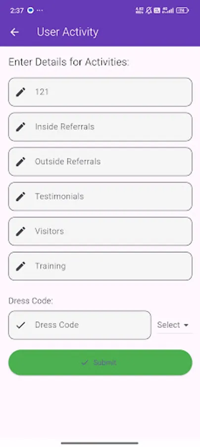Activity logging – After checking in, users can add a work or task they completed.