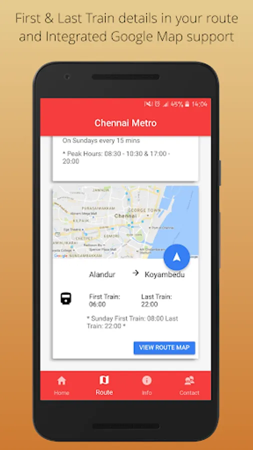 Traveling in Chennai Metro is too simple if you have our App that provides all details in nutshell. Try it and feel the same.