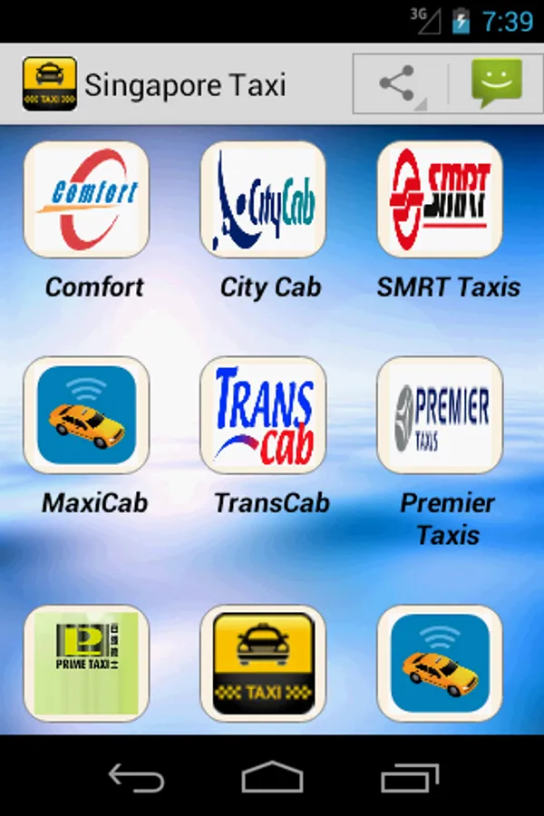 SG TAXI!!!! SG TAXI is a one touch access point to reach out all Singapore Taxi providers. Need a Taxi!!!! Open SG TAXI. Select your favourite Taxi Provider!!!! Call!!!! Reach out your SG Destinations on Time!!!!