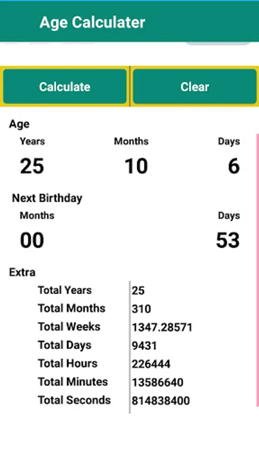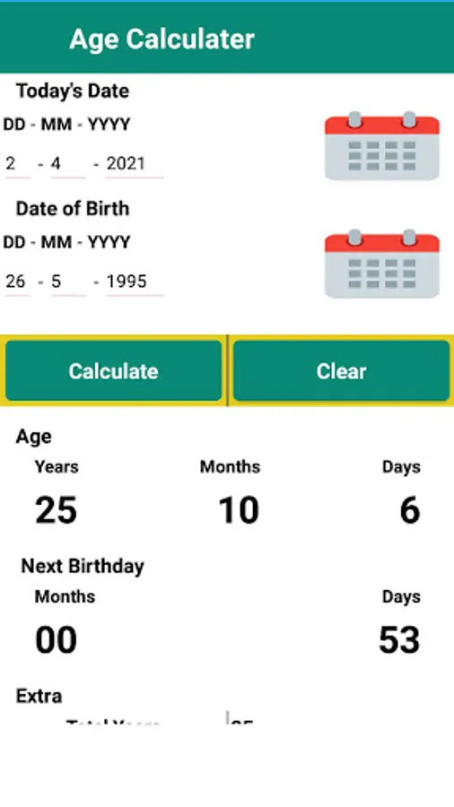 Calculate the age based on online app in Calculate the Date of Birth and another date and current date. first app download free and opne it and calculate your age for today date. this age calculator app calculate today age as will as how year, months, hours, minute, and secnde. this app is help to calculate your today age. this app is use to very easy. so download now Age calculator app today.