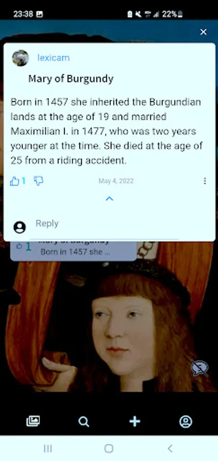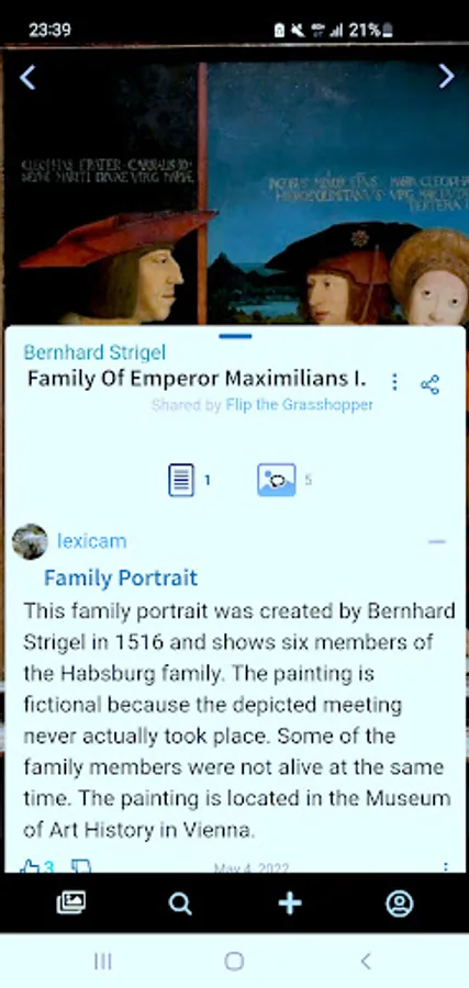 LexiCam is an open platform to share artworks in high resolution images (up to ~80MB) and explain their background stories. Users can find the page of the artwork by searching with their mobile camera at an exhibition or by following others users within LexiCam.