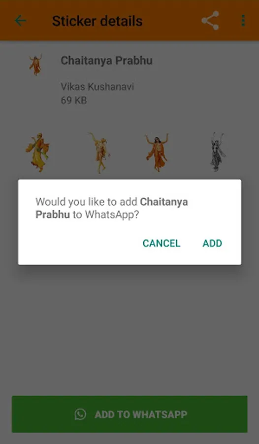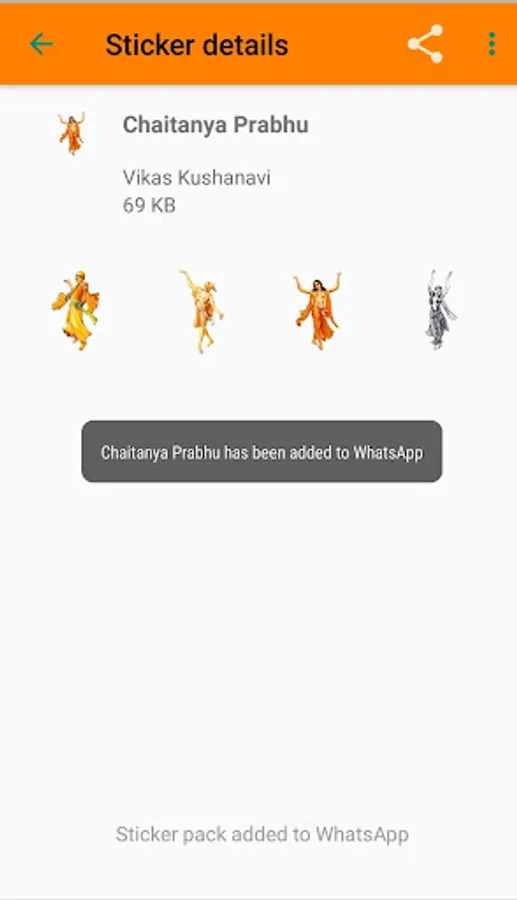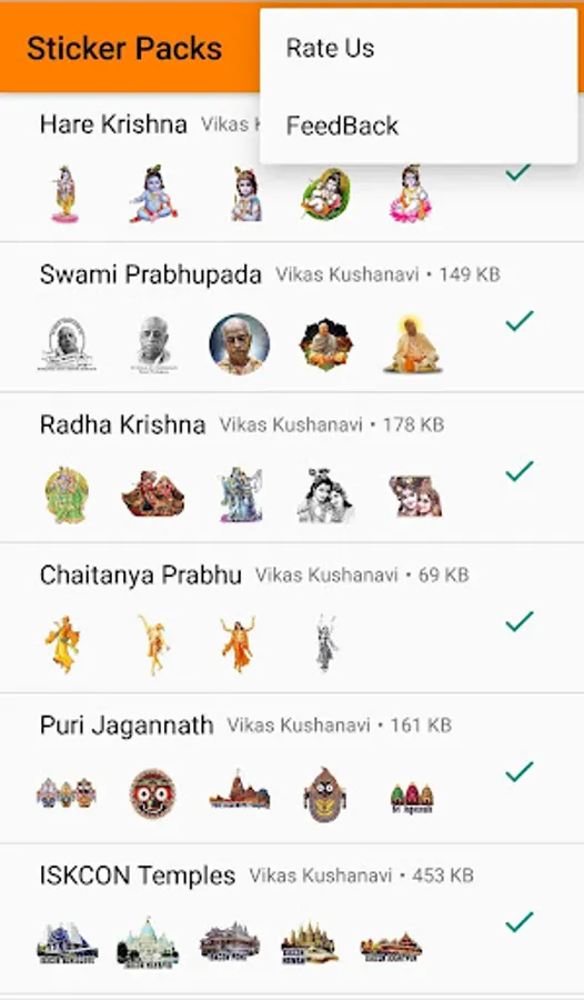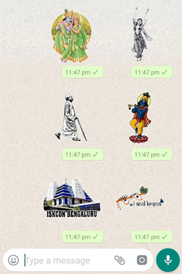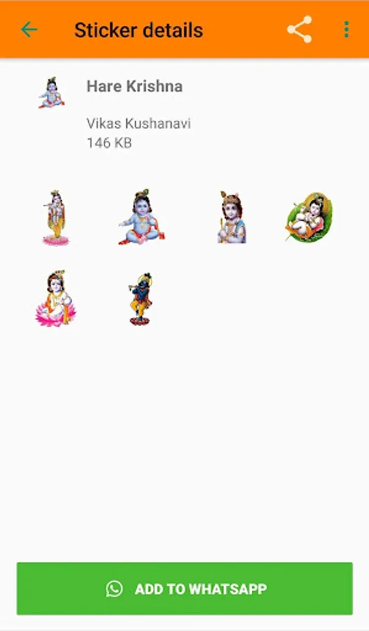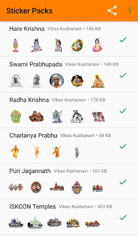 Add sticker packs fro whatsapp include various categories stickers like Hare Krishna, A.C. Bhaktivedanta Swami Prabhupada, Radha Krishna and Chant Hare Krishna. Almost all kind of stickers are added in the single app. Stay tuned and keep checking for future updates which may includes many more stickers.