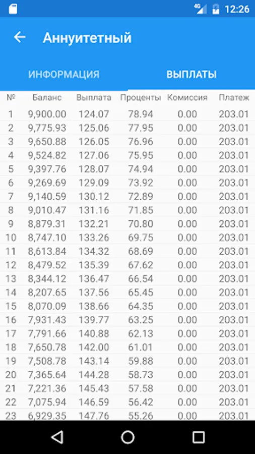 Considers while only annuity loan, available complete information on the loan and the payment table.