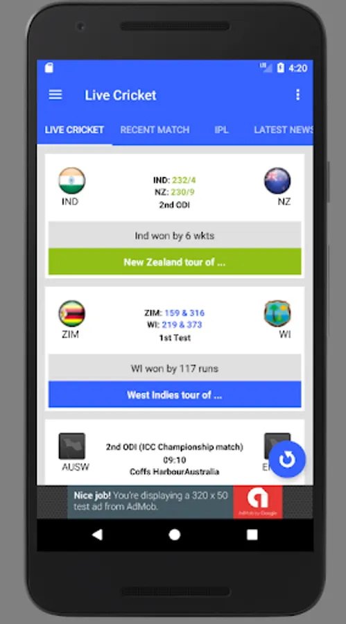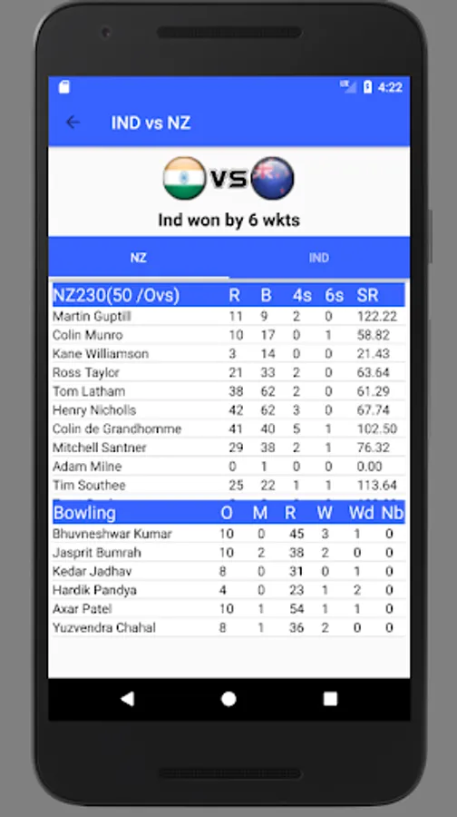With this app, you can get the LIVE scores of all the matches happening around the world and also the latest updates from the cricketing world.