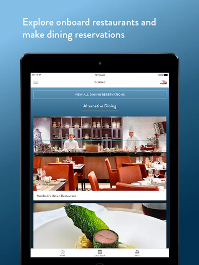 • Make Spa and dining reservations at our restaurants on Ocean and Expedition ships