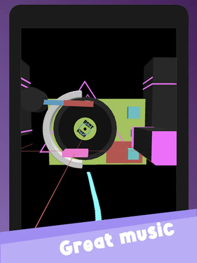 Like a DJ, scratch, mix and Remix with your finger to control a flying vinyl in an amazing and unique DJ game. Keep the music going by guiding the flying record through a trippy obstacle course filled with neon rings, blocks, and tunnels.