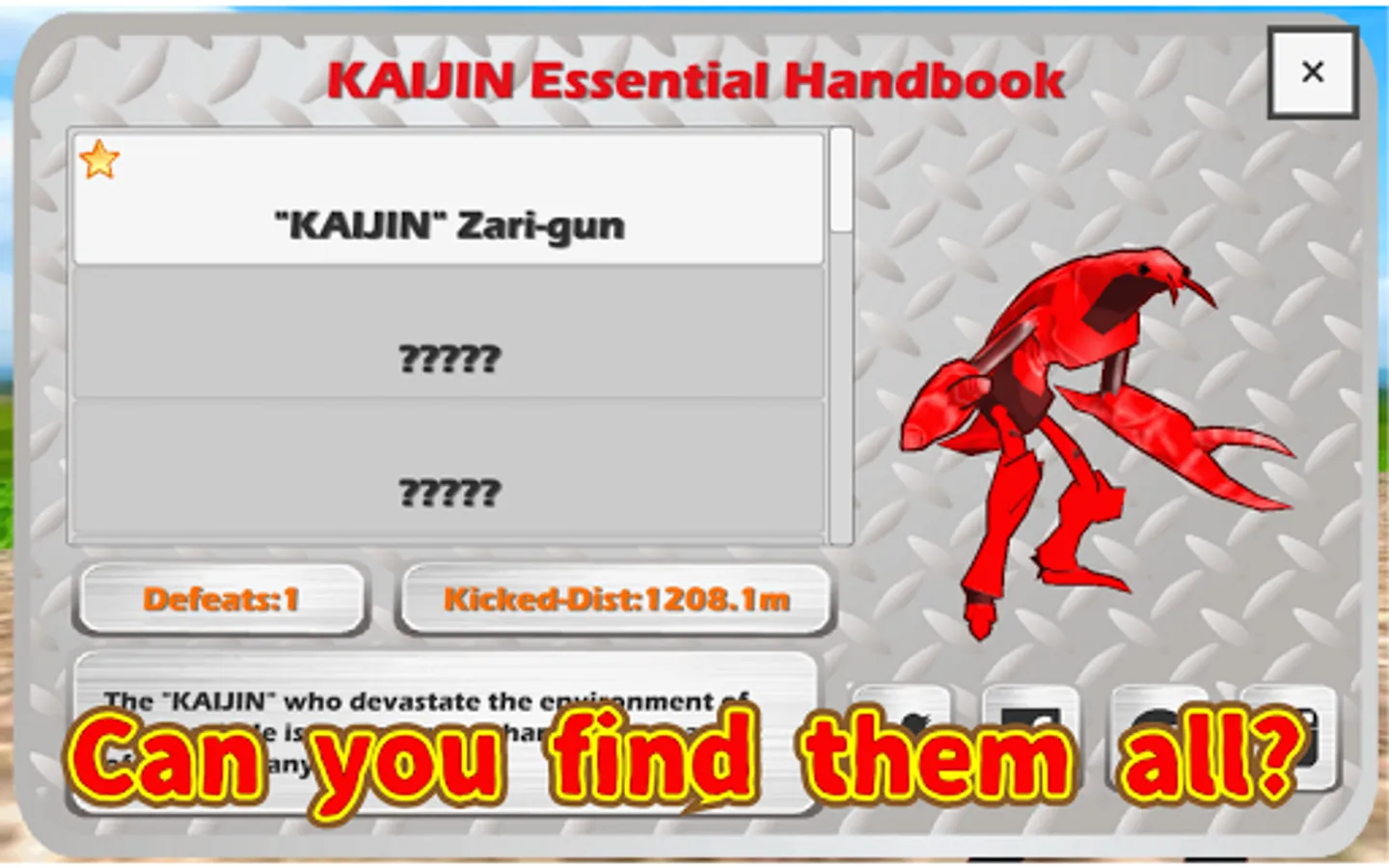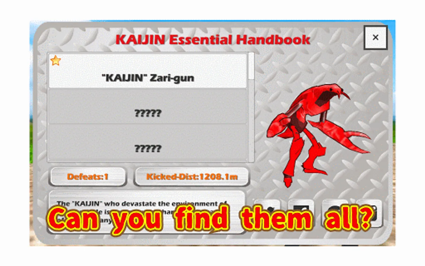 Defeat the "KAIJIN" by your BATTER KICK!!!