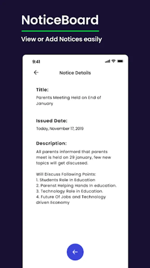 Don’t let them forget their exam dates, submission or annual function dates and time. Get all academic notices and alerts right on smartphone.