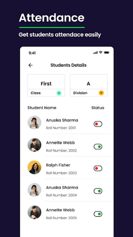 With the myschoolr app, the teacher can take whole class attendance with few clicks. Also, parents and students can see their attendance on their app.