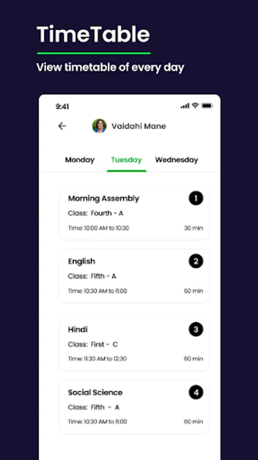 Creating and managing lectures with respect to the availability of a teacher is time taking process. We made this simple, with this feature teacher and student able to see the whole day and week wise schedule.