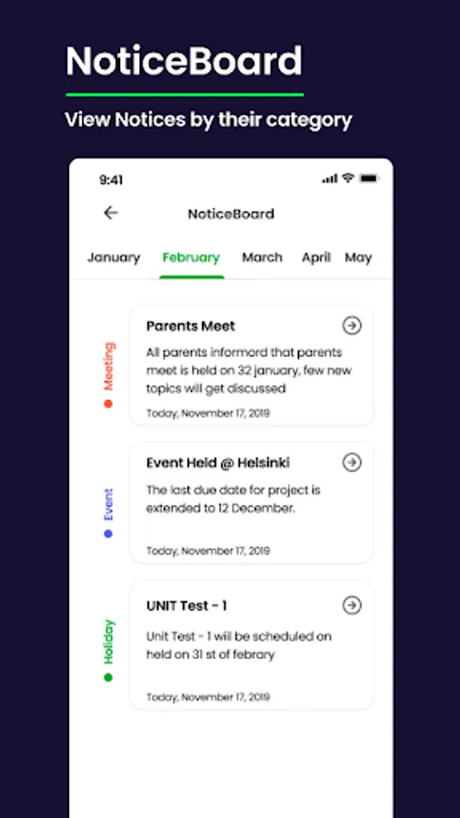 Don’t forget your exam dates, submission or annual function dates and time. Deliver all academic notices and alerts right on smartphone.