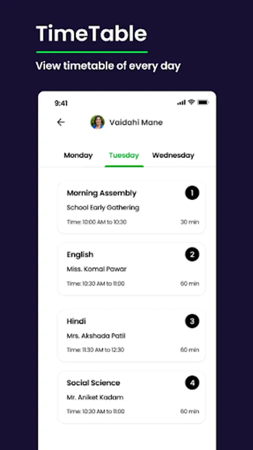 Creating and managing lectures with respect to the availability of a teacher is time taking process. We made this simple, with this feature teacher and student able to see the whole day and week wise schedule.