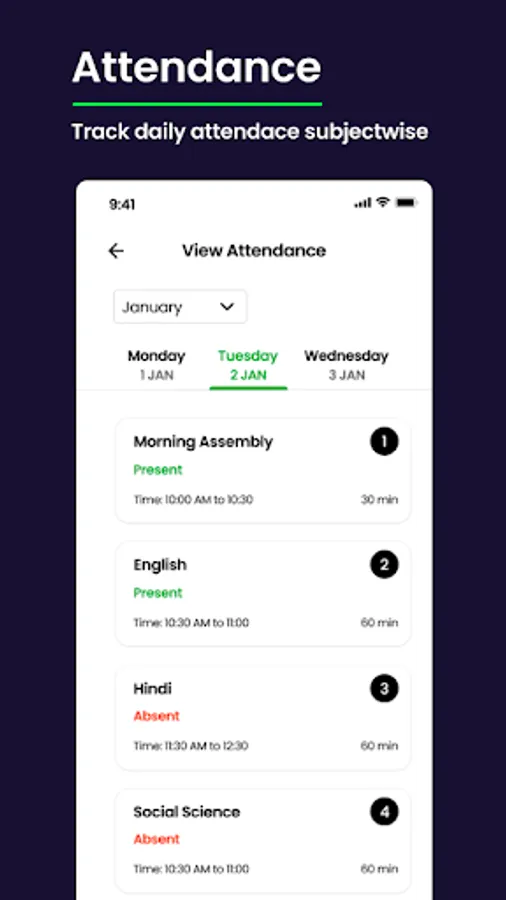With the MySchoolr app, the teacher can take whole class attendance with few clicks. Also, parents and students can see their attendance on their app.