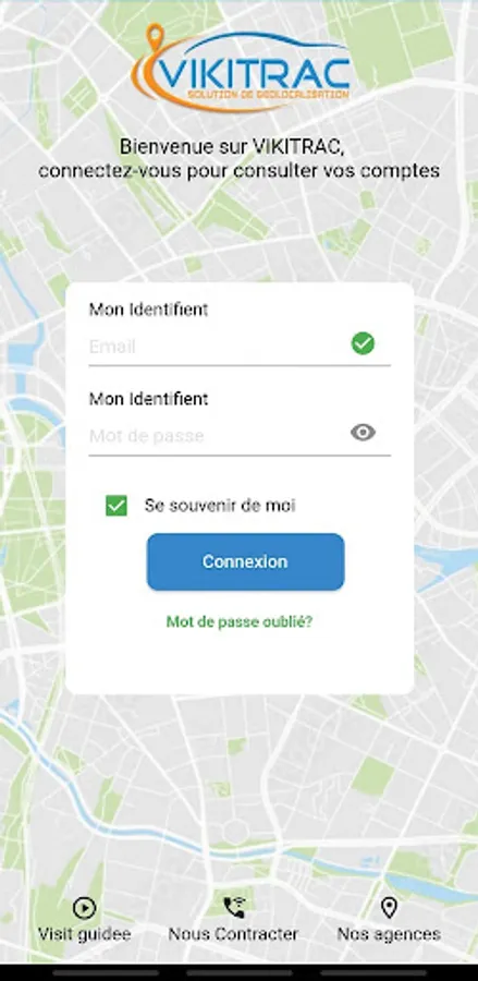 VIKITRAC: To use this application, register for free at www.gps.vikitrac.com or on your mobile application.