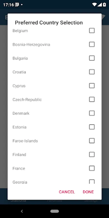 Radio stations from following european countries are supported