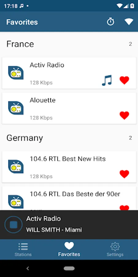 - Favorite Station List (Country wise)