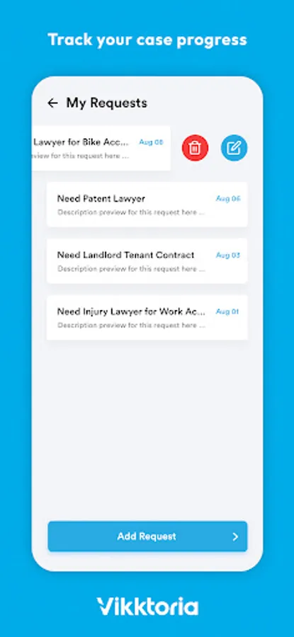 .Already hired a lawyer through Vikktoria? Continue to use the chat and audio/video feature for case updates.