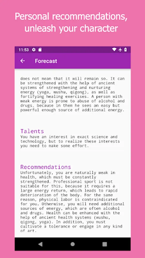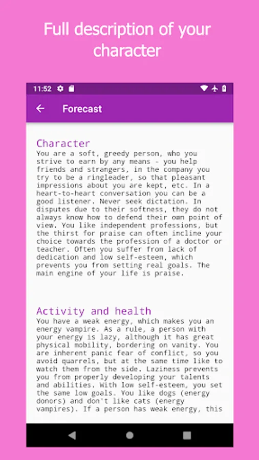 The mysterious magic of numbers assigns to each digit its own vibration, composed of a combination of specific properties. By deciphering the meaning of numbers in a date of birth, one can recognize the archetypical quality that embodies natural talents, character and ominous signs on a person’s path. Numerology is the mystical teaching of ancient Egypt that has come down to us from the scrolls of ancient thinkers and mystics. Our application not only allows you to build your exact numerological horoscope by the date of your birth but also gives specific recommendations for your character, helps you reveal your strengths and minimize weaknesses. Of course, you can get a prediction not only for yourself but for any person if you know the exact date of birth, which gives you additional and accurate information about the people around you. It’s not hard to understand what kind of strength an apparition conceals our applications because knowing the strengths and weaknesses of other people’s character you can easily manipulate them. Our app will give you new mystical power and will open up new opportunities.