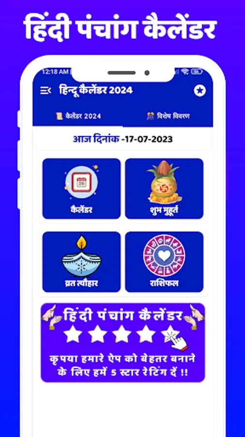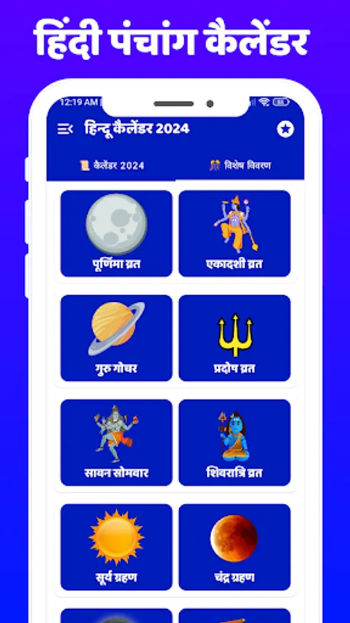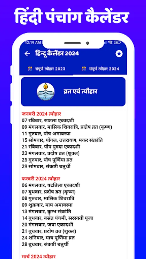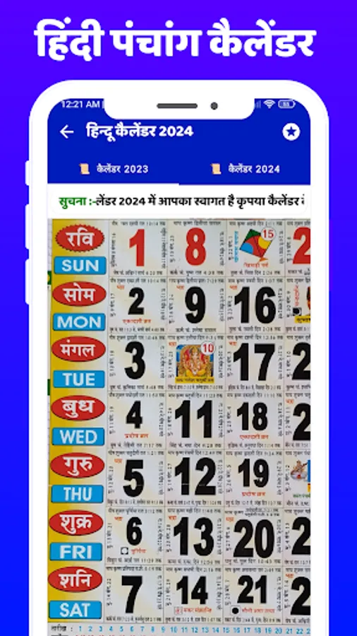 Hindi Panchang Calendar 2023-24 :हिंदी पंचांग कैलेंडर 2024 is native Panchang, which doesn't need Internet connectivity to use, comes with following features