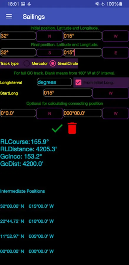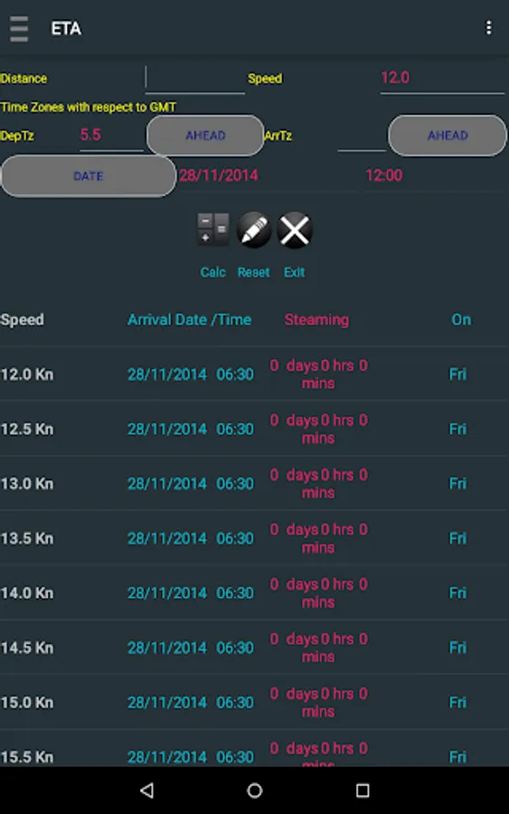 It also features a true wind calculator (giving wind speed and direction,dew point and relative humidity),an eta calculator (multiple results are shown at a time depending upon the user settings),a sailing calculator featuring great circle and Mercator sailing calculators along with intermediate point calculator.