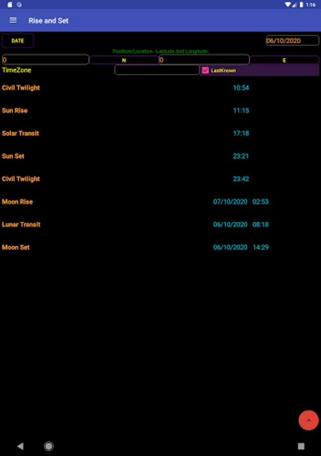 The accuracy of the results displayed has been thoroughly tested with the US navy website, the nautical almanac of 2013.The results are with in 10-15 seconds which is accurate enough for sea.
